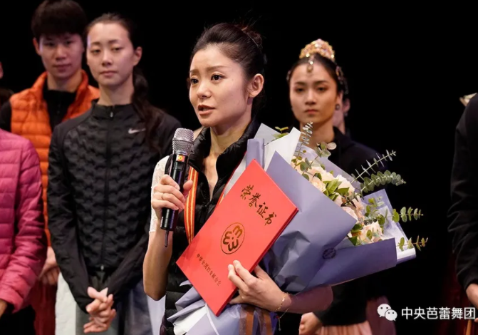2020年12月14日,在中央芭蕾舞团的演职员们紧锣密鼓地为第二天即将演出的古典芭蕾经典剧目《舞姬》做最后阶段排练之际,文化和旅游部机关党委二级巡视员、直属机关工会主席关红雯一行代表部党组领导来到天桥剧场,在全团演职员的见证下,为剧团副团长、首席主演张剑颁发了“全国三八红旗手”奖章和证书。这是中芭艺术家获得的全国妇联授予我国优秀女性的最高荣誉。