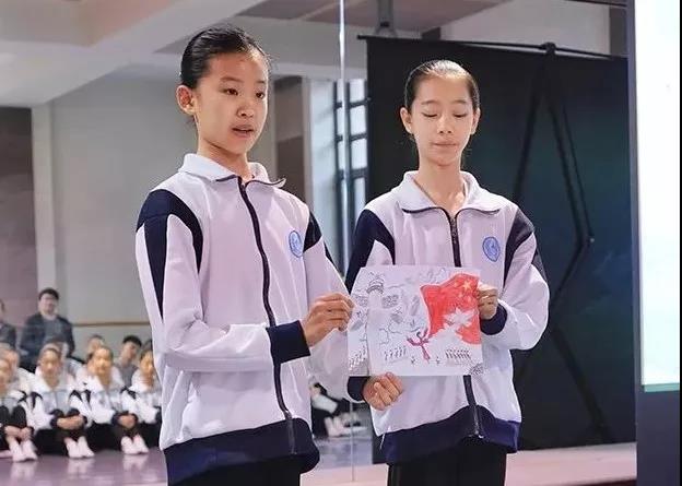 焦亚歆和周梦歆同学用画笔表达心声,创作了《我爱祖国》绘画作品,并为大家讲解绘画寓意,抒发了心中浓厚的爱国之情。