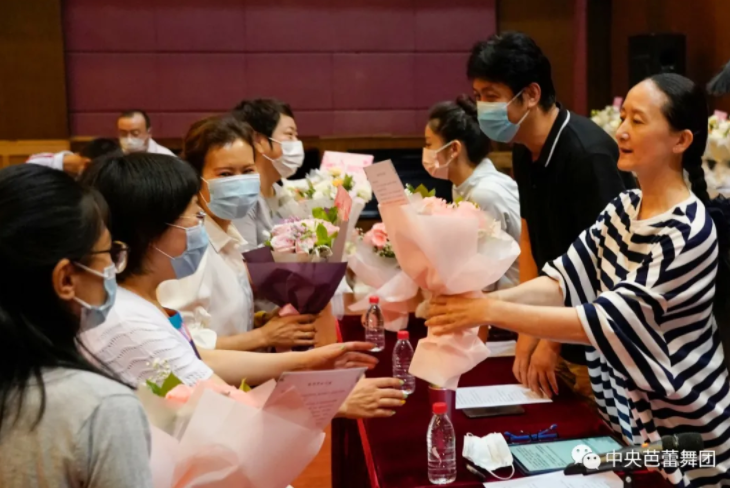 On the morning of September 9, 2020, National Ballet of China held a grand Teachers' Day celebration on the fourth-floor auditorium of the Company. Flowers were solemnly delivered by the leading members of the Company led by Director Feng Ying, to the more than 50 representatives from répétiteurs of NBC, the Dance School of National Ballet of China, Beijing Yucai School and teachers from Yilei of NBC, to pay respects and greetings on the special day!