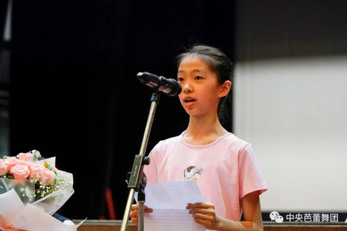 Student representative of the Dance School of National Ballet of China Huang Jueya delivered a speech