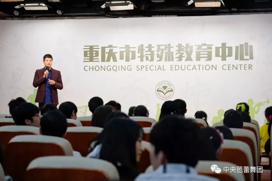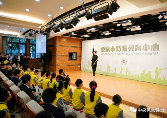 On October 22nd, just two days after the artists of the National Ballet of China giving performances of "High Art into Campus" in Zhengzhou which showed the beauty of ballet to the hearing-impaired students from School of Special Education in Zhengzhou Normal University, another team of artists of National Ballet of China visited Chongqing Special Education Center with the purpose of actively promoting high arts into campus, further enriching the cultural life on campus, paying attention to the healthy growth of disabled teenagers, and helping cultivate the outstanding quality of disabled students' continuous self-improvement. A lively activity with the theme of "Remain true to our original aspiration and keep our mission firmly in mind" was held with the joint efforts of National Ballet of China, Chongqing Grand Theatre and Chongqing Special Education Center, before the performance of The Red Detachment of Women in Chongqing.,
